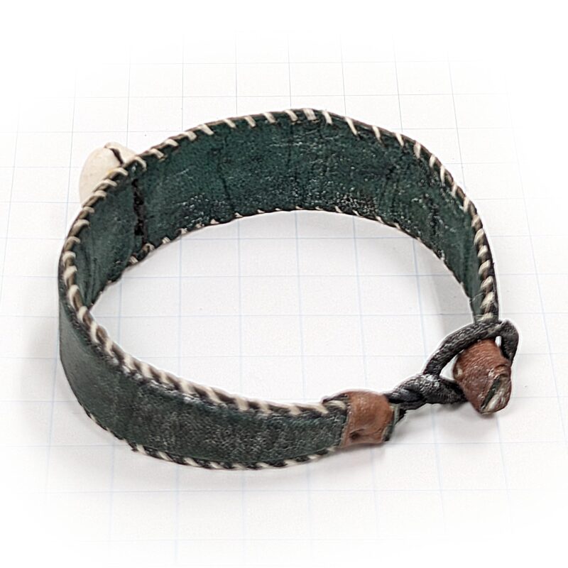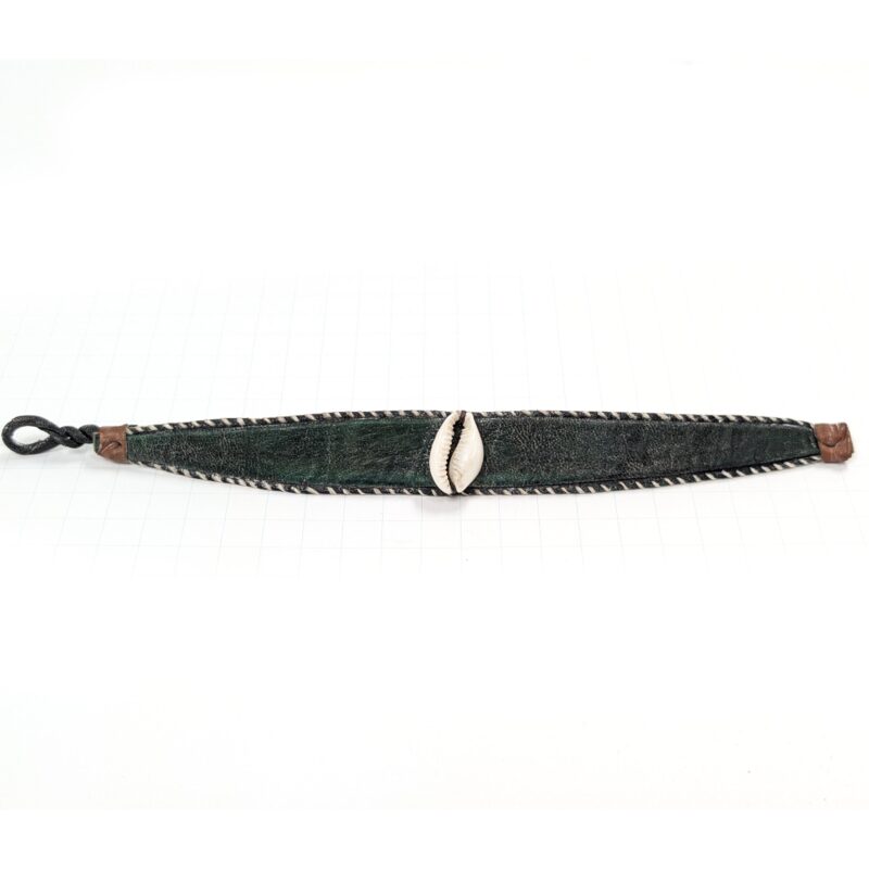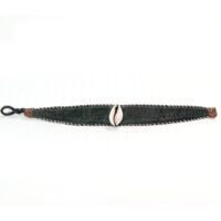 ブルキナファソで手作りされた子安貝がアクセントの革製のブレスレットです。フックで外れるので幅広いサイズに対応できます。