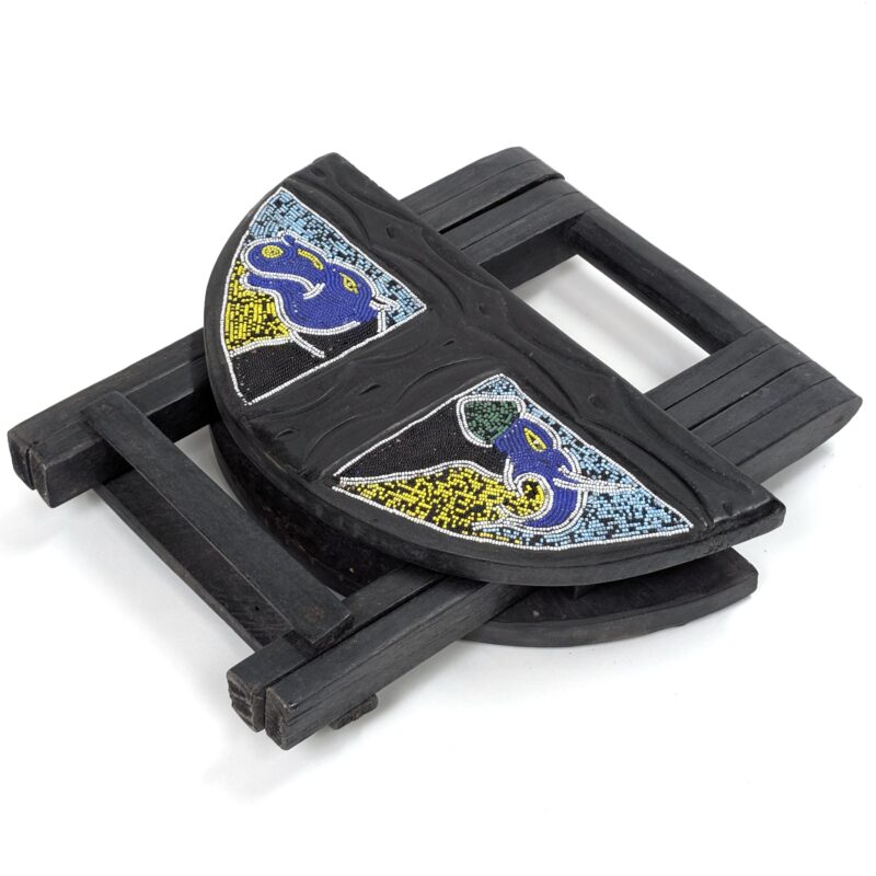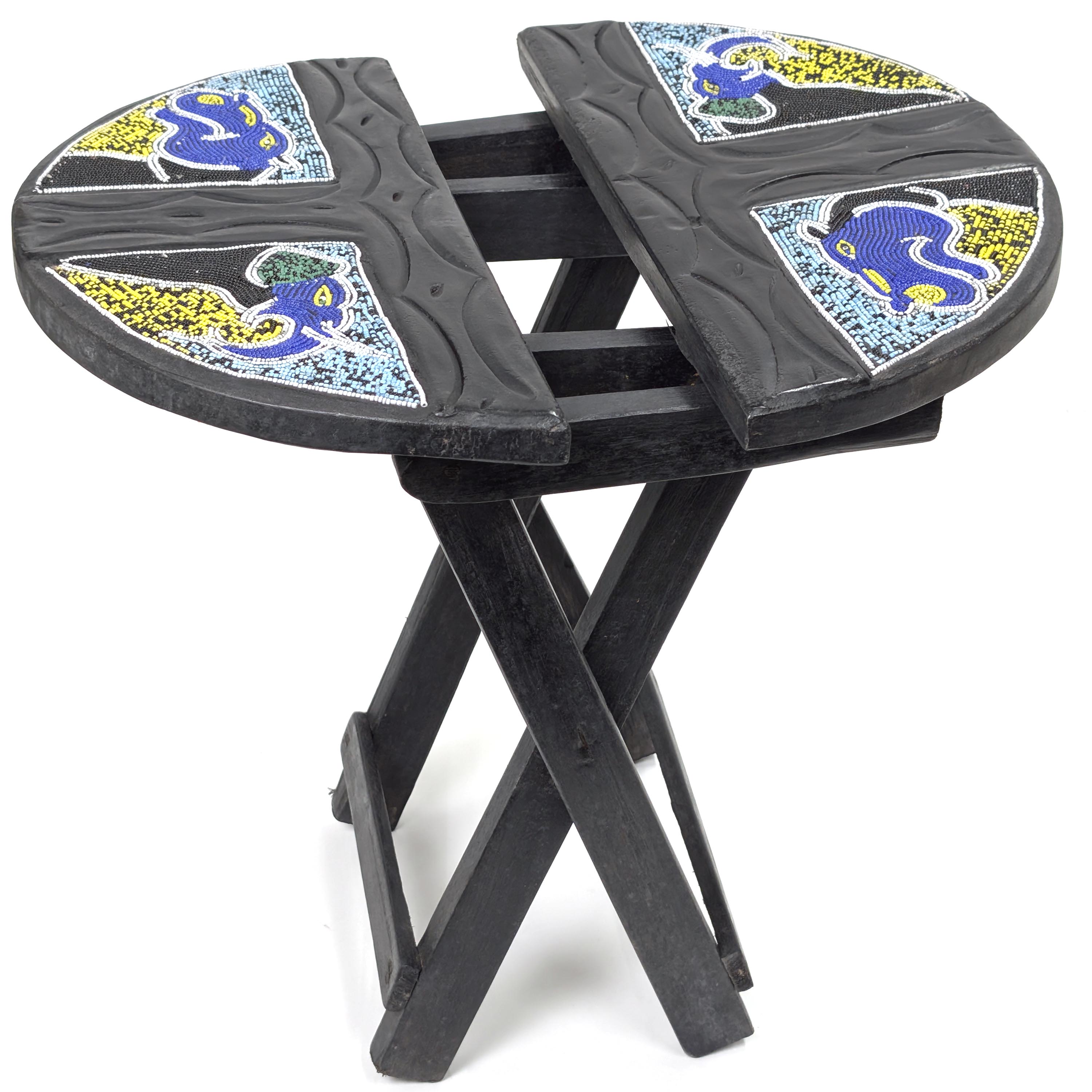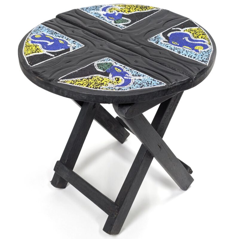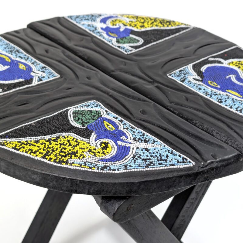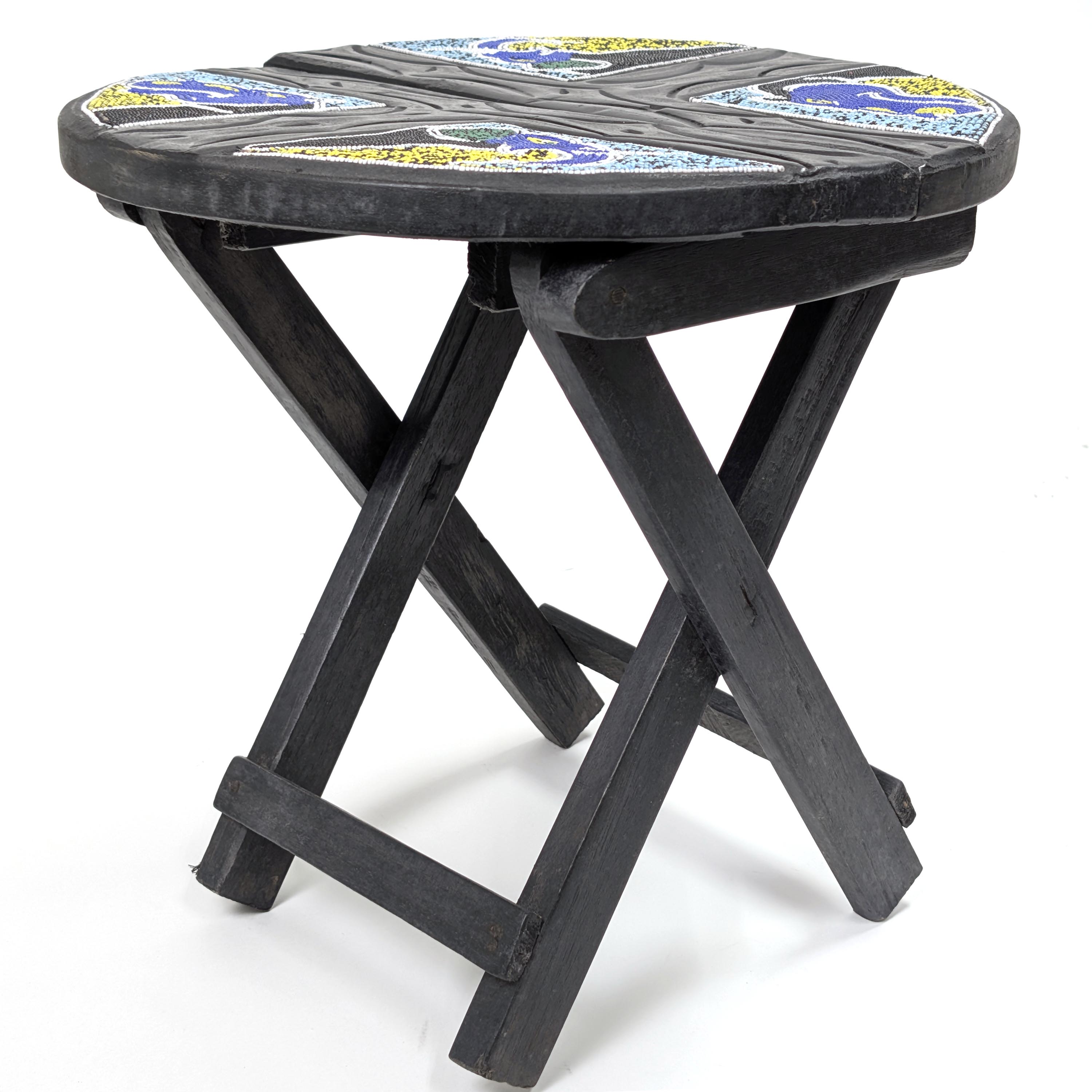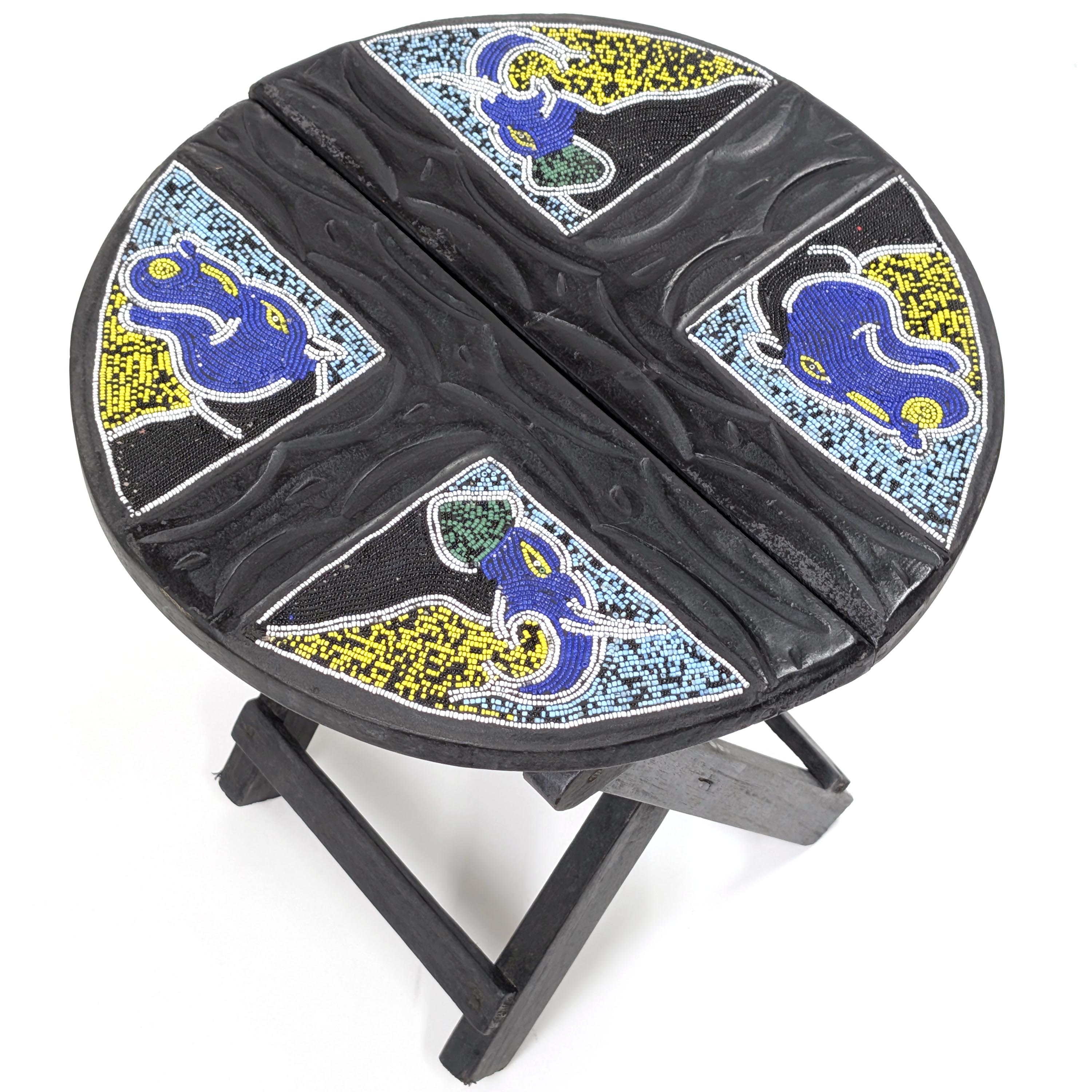 コートジボワールで作られたティータイム用の折り畳みテーブルです。小さなビーズを丁寧に埋め込んでとてもきれいに装飾されています。