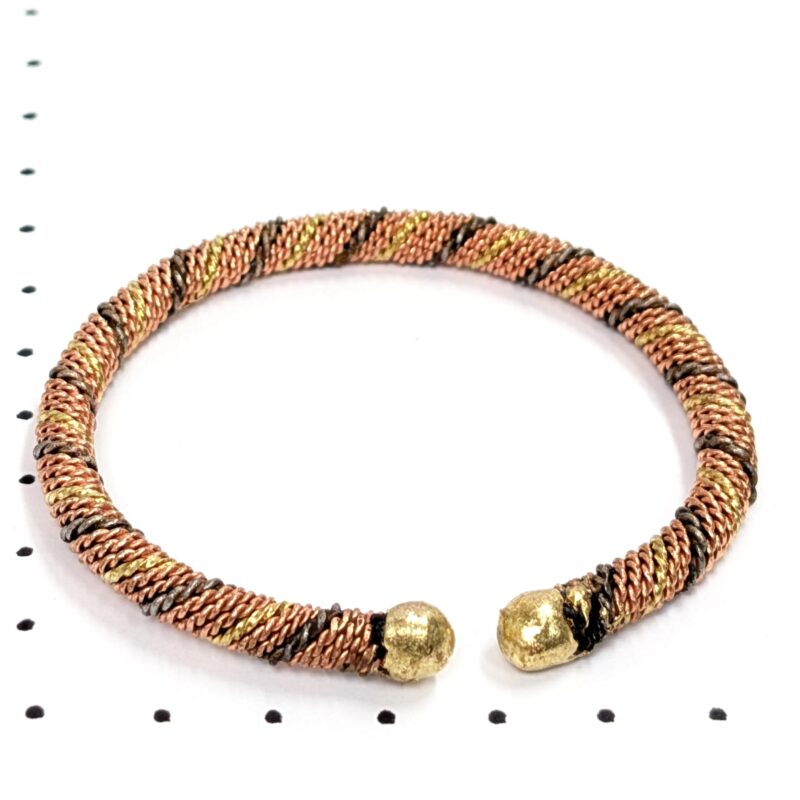 西アフリカ・ブルキナファソの熟練職人が手掛けた、銅線を編み込んだハンドメイドブレスレット。