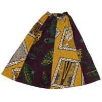 ギニアで人気のプリント柄の綿100%生地を使ったアフリカンなパッチワークスカートです。なんと完全ワンオフ、この柄は世界にたったひとつです。