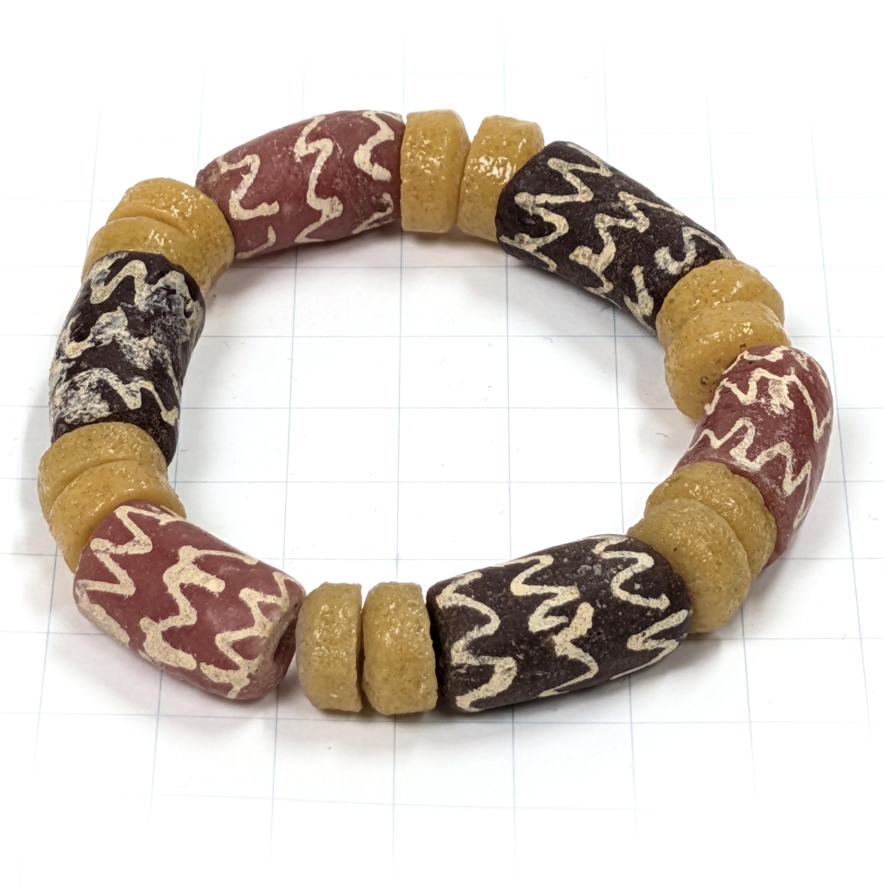 アフリカン 再生ガラスビーズ ブレスレット ゴム芯 (r211-06)
