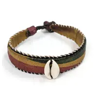 アフリカン 革+子安貝 ブレスレット (r123-24)
