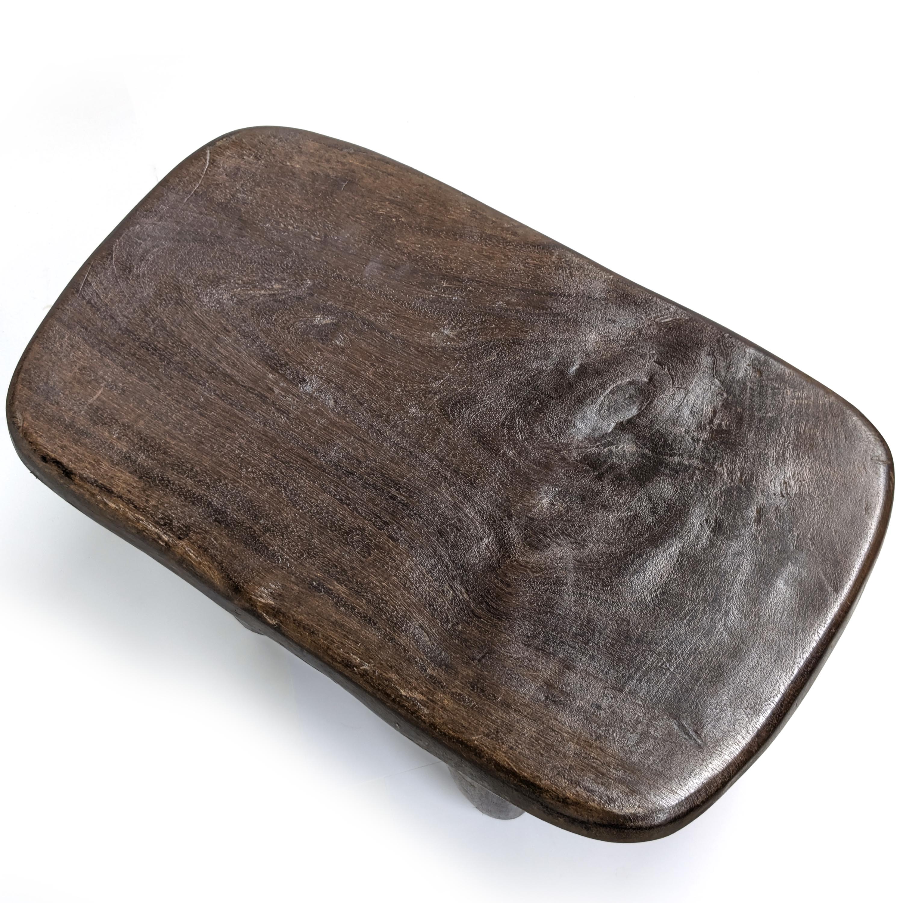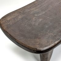 この作品は座面59×36cmと巨大腰掛の中では比較的扱いやすいサイズで、黒茶色に艶を帯びた木肌と美しい木目が年月を感じさせます。